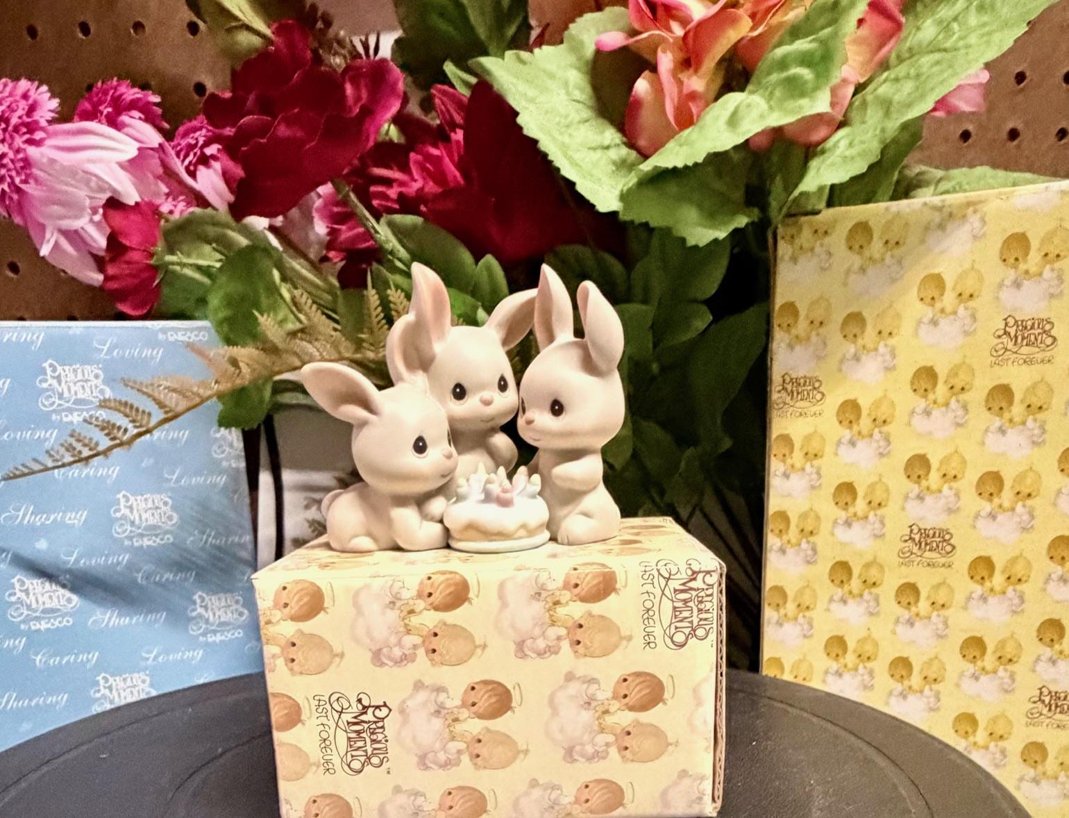 Celebrate another year with a smile! This charming Precious Moments figurine features three sweet grey hares gathered around a pastel birthday cake. Released in 1994 and now retired, this collectible blends gentle humor with classic Precious Moments style. Perfect for birthdays, collectors, or anyone who appreciates a cute play on “grey hairs.”