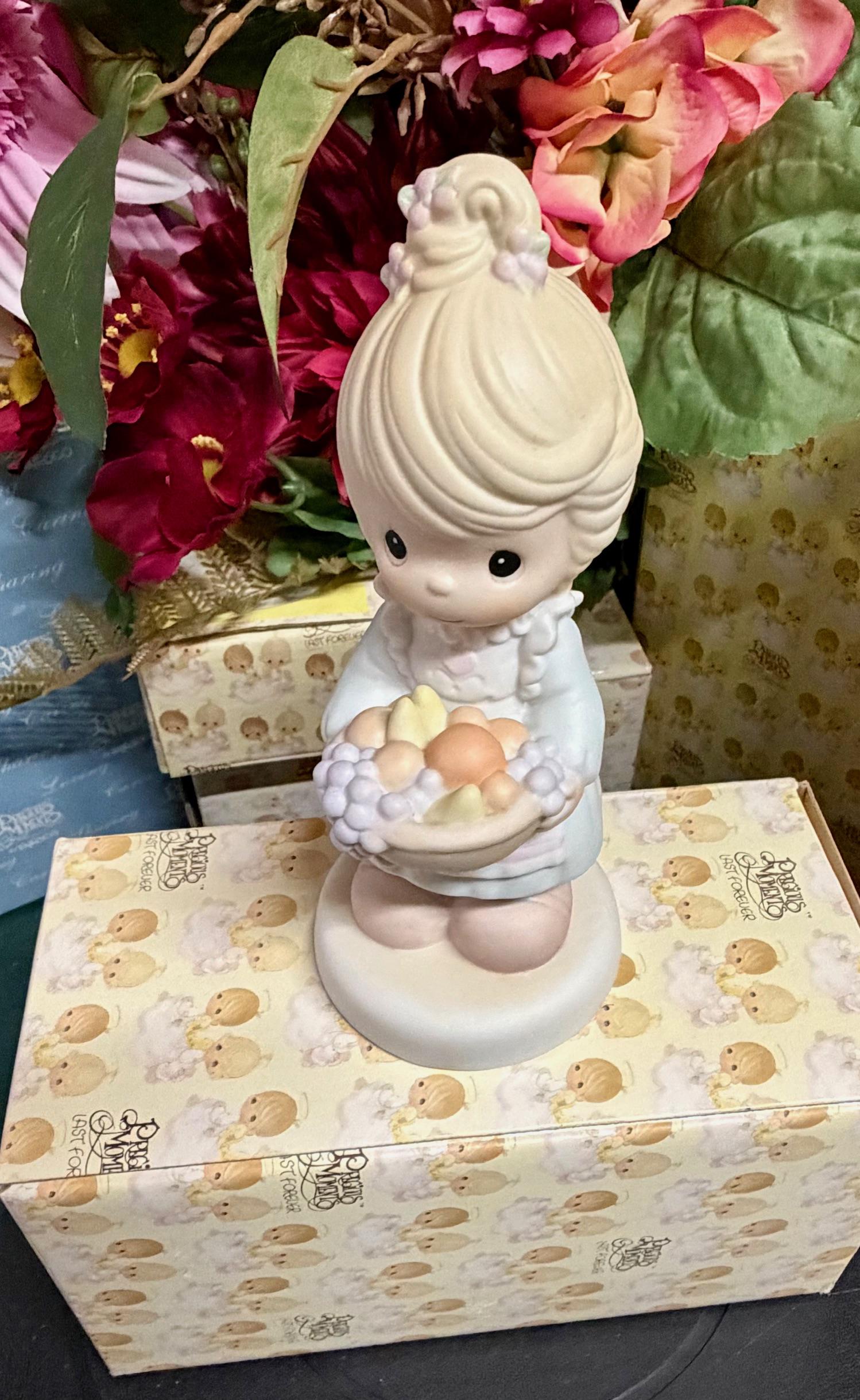 Celebrate the beauty of love with this charming Precious Moments figurine featuring a child holding a bowl of fruit. Introduced in 1993 and retired in 1999, this collectible captures the gentle message of the Fruit of the Spirit with classic Precious Moments artistry. Crafted in bisque porcelain and standing approximately 5–6 inches tall, it’s a heartfelt addition to any faith‑inspired collection or a thoughtful gift for someone who brings love into your life.