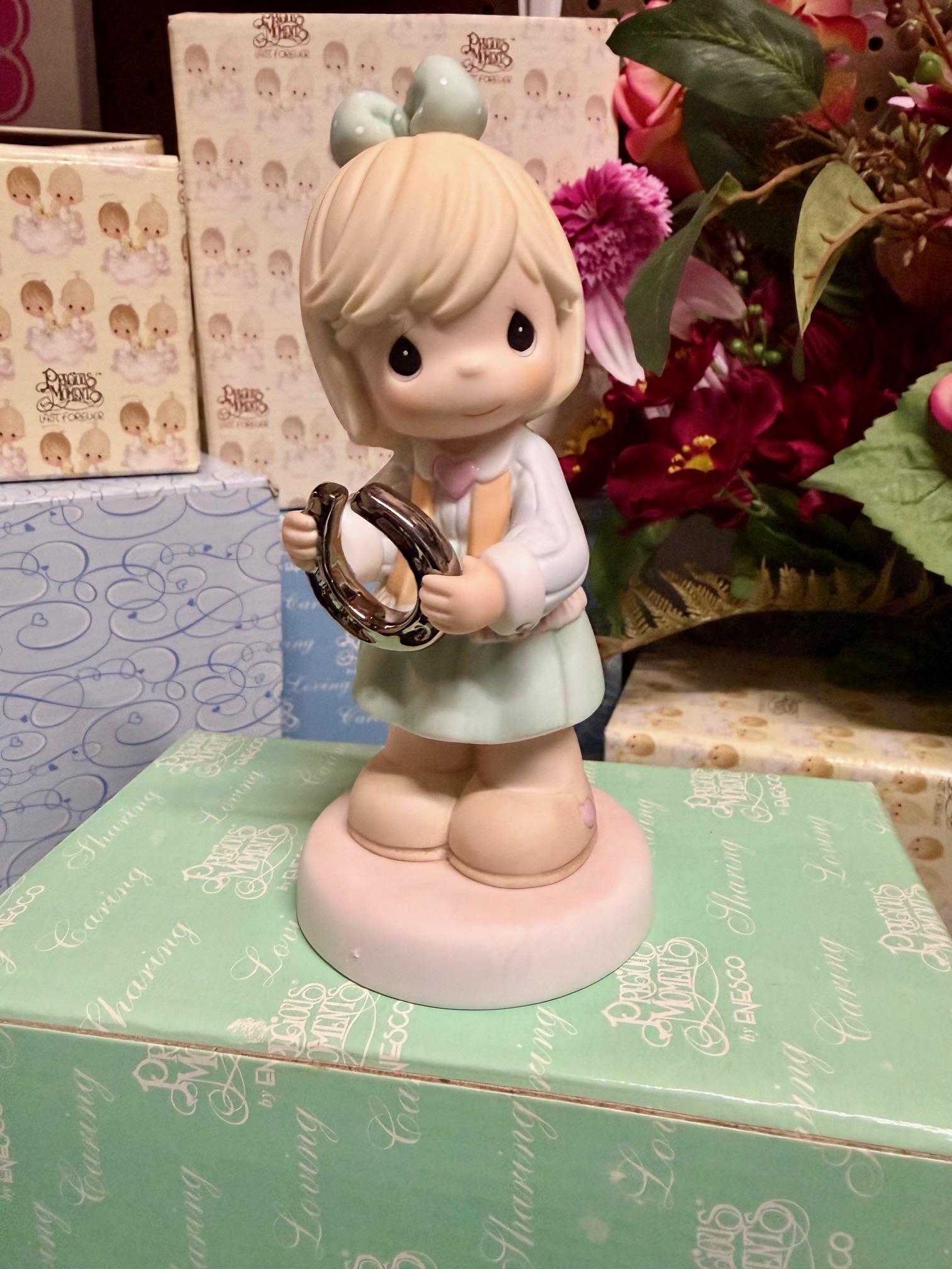 Celebrate the joy of having a wonderful daughter with this heartfelt Precious Moments figurine. Featuring a sweet girl holding a silver horseshoe, this 2002 bisque‑porcelain collectible captures the warmth, gratitude, and gentle charm that Precious Moments is known for. With soft pastel colors and classic detailing, it makes a meaningful gift for birthdays, holidays, or simply reminding a daughter how loved she is.