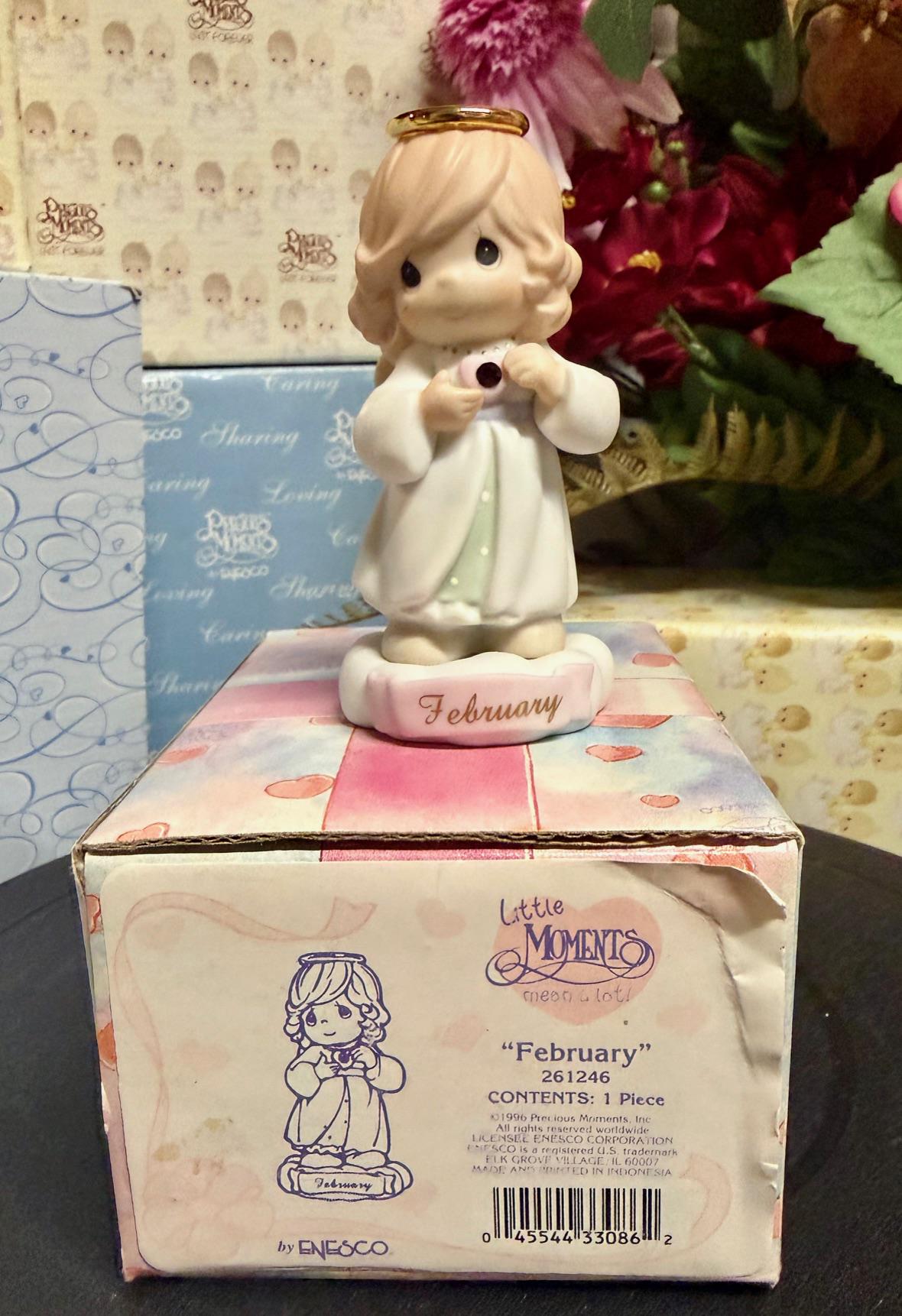 Celebrate February birthdays with this adorable Little Moments angel holding a purple gemstone. Part of the 1996 monthly series by Enesco, this sweet figurine features a tiny angel with a golden halo, dressed in soft pastels and standing on a base labeled “February.” A perfect gift for February birthdays or a charming addition to a monthly collection.