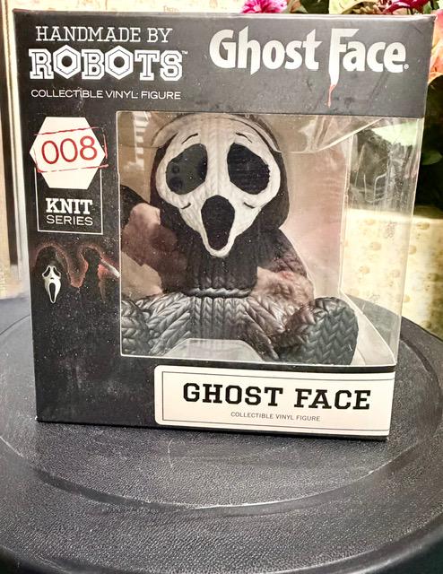 A horror classic gets a cozy twist! This collectible vinyl figure from the Handmade by Robots Knit Series reimagines Ghost Face as a soft, stitched‑look doll—right down to the faux yarn texture and tiny sculpted “tag.” Despite its handmade appearance, it’s crafted from durable vinyl and perfect for display in or out of the box.
