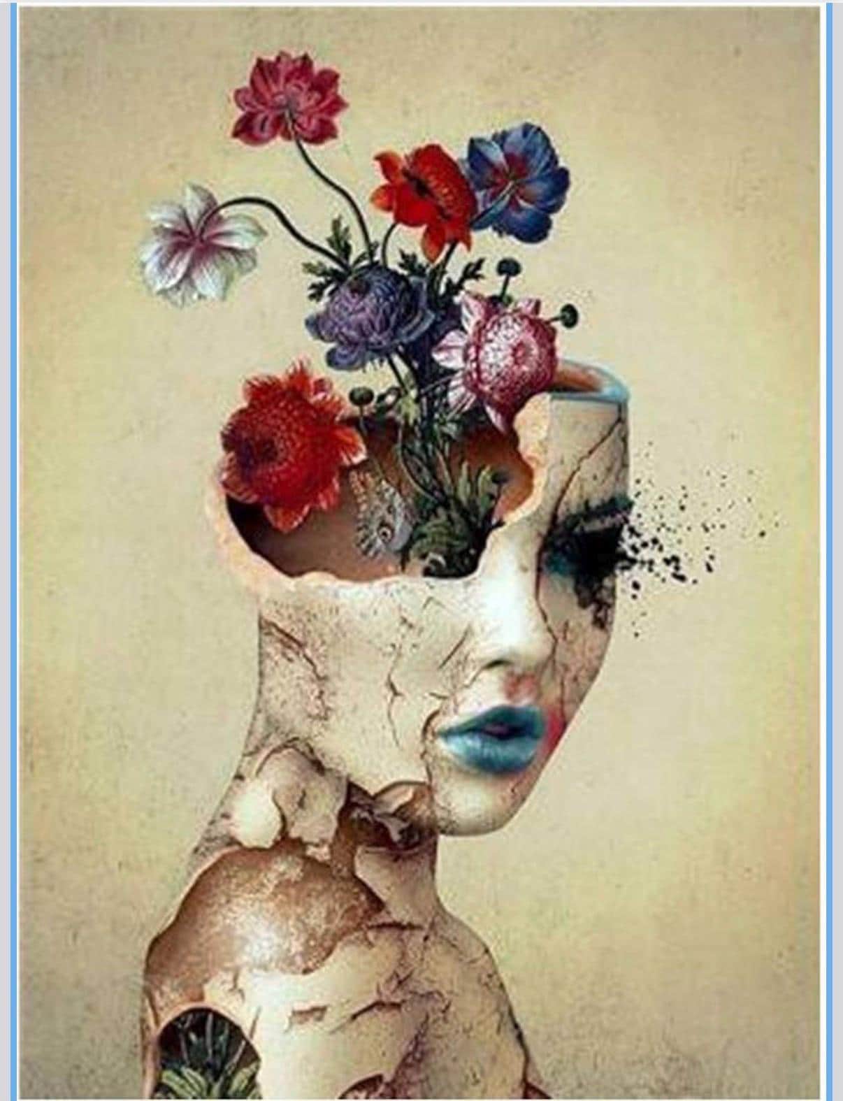 Create a striking, surreal masterpiece with the “Blooming Mind” diamond art kit. Featuring a cracked sculpted face blooming with vibrant flowers, this design is perfect for crafters who love bold, artistic, and imaginative imagery.