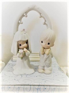 Precious Moments Bride and Groom with wedding arch. Great idea for a cake topper or just to add to your collection. The entire wedding party is available, check out my other listings.